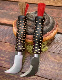 search no more, you have found THE tool for the job. safe curved steel blade perfect for cutting the stems, shaving those dirty stipes, and the perfect brush for clearing dirt and duff from any part of the mushroom. can be used to harvest many many things from fiddleheads to ramps and anything growing in your garden, keep your basket clean and neat, save time and enjoy your experience so much more, makes a great gift to the mushroom hunter in your life!